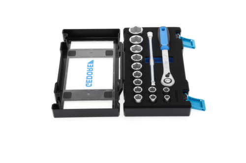 "longDescription": "Composé à partir du quotidien de l'atelier, Avec douilles forgées, trempées, à commande manuelle, profil UD 6 pans, Avec outils de commande en acier au vanadium 31CrV3, Avec cliquet réversible à levier robuste, avec déclenchement par bouton-poussoir, Avec rallonge de cardan, permet un pivotement jusqu'à 15<br>",