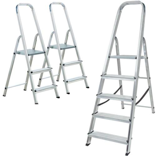 "metaDescription": "3 escabeaux industriels en kit économique - 2x3 marches/1x5 marches, à un côté, alu",