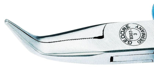 "longDescription": "Mâchoires coudées à 45°, fines, à bout plat et arrondi, surfaces de préhension à fine coupe transversale, Avec ressort d'ouverture, ESD = décharge électrique (Electro Static Discharge)<br>",