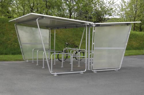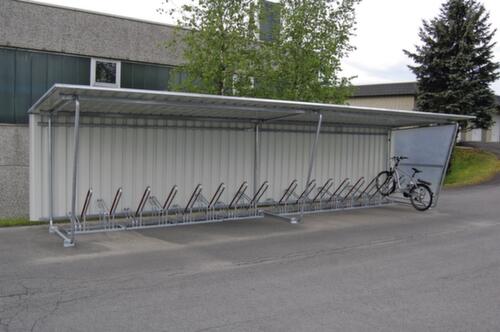 "longDescription": "<h2>Abri</h2><strong>protection contre intempéries pour vélos</strong><br><ul><li><strong>Extensible à volonté</strong> grâce aux éléments de rallonge</li><li><strong>Anticorrosion</strong> - toutes les pièces en acier sont galvanisées</li><li><strong>Aire de stationnement sèche</strong> grâce au toit en appentis en tôle trapézoïdale galvanisée avec revêtement</li><li><strong>Montage simple par l'utilisateur</strong> - notice de montage, schéma de construction et plan de fondation inclus, sans matériel de fixation</li></ul><br><h3>Commandez directement :</h3><ul><li><strong>Protection intégrale</strong> - paroi arrière en tôle trapézoïdale galvanisée avec revêtement et paroi latérale en polyester lisse et transparent, ossature en tube rond avec équerres de raccordement à cheviller</li></ul><br><h3>Le choix vous appartient :</h3><ul><li><strong>Simple accès</strong> - pour jusqu'à 12 emplacements cycles à simple accès</li><li><strong>Double accès</strong> - pour jusqu'à 24 emplacements cycles à double accès, gouttière et tuyau de descente en PVC</li></ul><br><strong>Livraison !</strong><br><ul><li>Déchargement avec gerbeur ou grue obligatoire</li><li>Travaux de fondation côté client</li></ul>",