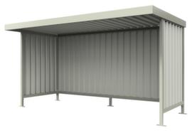 parois en verre de sécurité transparent. toit en tôle trapézoïdale en RAL9002 blanc gris. structure en acier galvanisé avec laquage humide RAL7016 gris anthracite. structure soudé. Modèle avec entrée large. drainage par gargouille. À cheviller.