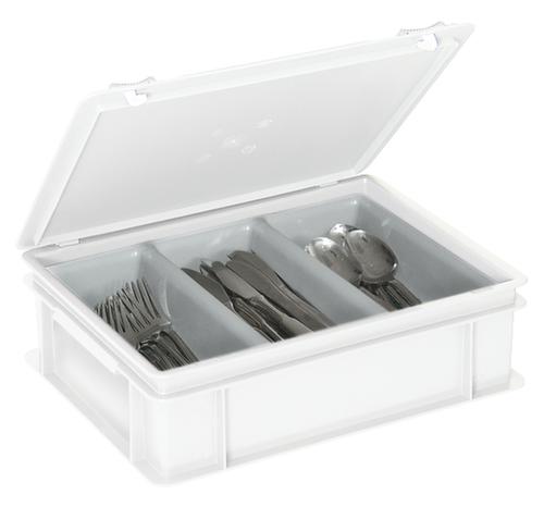 }Affaire Euronorm avec insert de coutellerie, blanc, HxLxl 130x400x300 mm