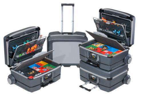 "longDescription": "<h2>Chariot de service/chariot de montage</h2><ul><li>Fabriqué en polycarbonate, cadre en aluminium</li><li>Peut être ouvert et fermé d'une seule main</li><li>Le couvercle se verrouille à l'ouverture et se freine à la fermeture.</li><li>Verrouillable avec une serrure à combinaison</li><li>Tiroir télescopique à 4 volets en aluminium</li><li>Roues à roulement doux, résistantes à l'usure, montées sur roulement à billes.</li></ul><br>L'affaire<br>Ce chariot de service de la série ProServe d'Allit est fabriqué en polycarbonate et est donc extrêmement robuste et résistant aux chocs. Le cadre du profilé est en aluminium et se ferme hermétiquement. L'étui est facile à ouvrir et à fermer d'une seule main : Il suffit d'appuyer sur le boîtier pour le fermer et d'actionner le levier à une main pour l'ouvrir. Le couvercle se verrouille en position lorsqu'il est ouvert. En outre, il dispose d'un frein de couvercle intégré, qui offre une résistance et contrôle ainsi le poids du couvercle lors de la fermeture. L'étui peut être verrouillé par une serrure à combinaison et protège vos ustensiles contre tout accès non autorisé.<br><br>Le châssis<br>Le chariot est doté d'une extension télescopique quadruple en aluminium. Celle-ci est actionnée par un bouton poussoir. Les roues à roulements à billes sont particulièrement fluides et extrêmement résistantes à l'usure. <br><br>L'équipement intérieur<br>Le chariot de montage est disponible au choix comme modèle de base ou avec divers aménagements intérieurs. Vous pouvez équiper le modèle de base de nombreux éléments de compartimentage en fonction de vos besoins individuels. Vous pouvez notamment choisir entre des porte-outils, des boîtes à petites pièces ou des inserts en mousse.<br><br>Le matériau<br>Le polycarbonate présente une résistance, une rigidité et une dureté élevées et possède de bonnes propriétés d'isolation contre l'électricité. En outre, le matériau a une large gamme de températures et résiste à l'eau, à de nombreuses huiles et graisses, à de nombreux acides minéraux et à des solutions aqueuses de sels neutres et d'agents oxydants. Le polycarbonate a donc une très grande résistance au vieillissement et fait de ce chariot de montage votre compagnon pendant de nombreuses années.<br><br><strong>Bon à savoir !</strong><br>Vous planifiez un voyage en avion avec votre valise de transport à roulettes ? Commandez en même temps la sangle de valise avec serrure à combinaison TSA.<br>",