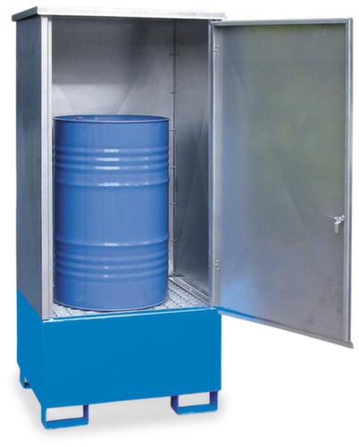 "metaDescription": "Armoire à tambour - HxlxP 1900x900x750mm, p. fût 1x200l, vol. rétention 220l, porte à battants, tablette de rét. RAL 5015, corps galvanisé",