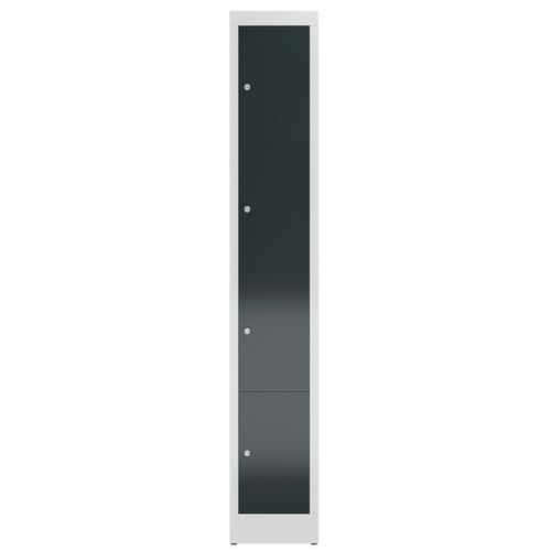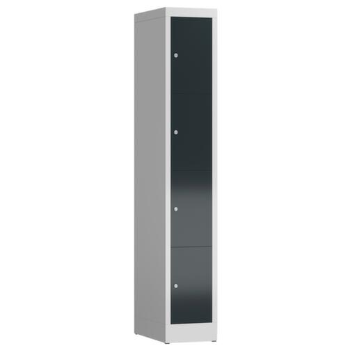 porte à battants. verrouillable avec serrure à cylindre. structure en acier, soudé. corps avec finition peinture époxy électrostatique en RAL7035 gris clair. face avant avec finition peinture époxy électrostatique en RAL7016 gris anthracite.