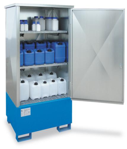 "metaDescription": "Armoire pour produits dangereux, hauteur x largeur x profondeur 1900 x 900 x 750 mm - p. substances dang. p. l'eau, HxlxP 1900x900x750mm, porte à battants, 3xcaillebotis, galvanisé, galvanisé",