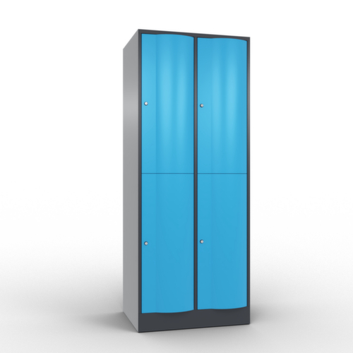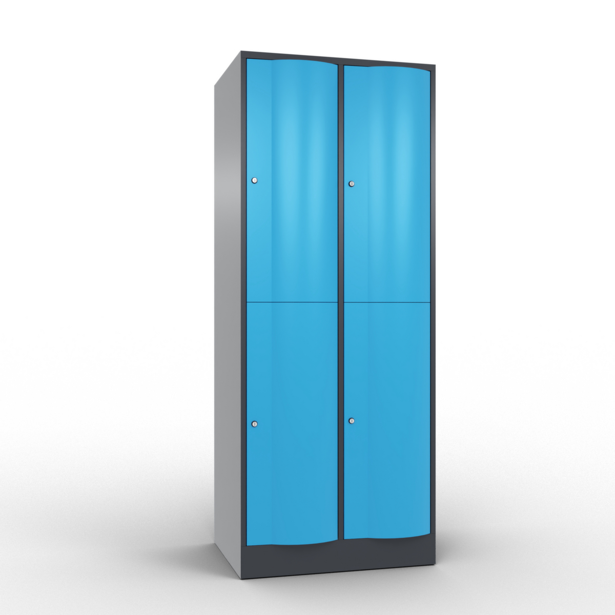 La porte battante convexe vers l’avant est absolument stable et résistante au vandalisme, même aux coups de pied. Les portes battantes sont montées sur des charnières robustes à espagnolettes internes et résistent ainsi à des sollicitations élevées. Chaque porte est équipée de série d’un amortisseur, de sorte que, même fermée avec élan, elle ne claque pas. Cela contribue non seulement à améliorer l’environnement sonore, mais protège aussi l’armoire en acier des dommages. De plus, la limitation d’ouverture de porte protège la porte contre l’extension excessive et contre le chevauchement de la surface utile avec l’armoire annexe. verrouillable avec serrure à cylindre. Les orifices de ventilation dans la paroi arrière assurent une bonne circulation de l’air dans chaque casier. Grâce au plateau supérieur, l’armoire à poser peut être utilisée comme surface de travail ou tablette supplémentaire. Le socle encastré permet de répartir uniformément le poids de l’armoire sur le sol. Cela augmente la stabilité et l’armoire peut supporter des charges plus lourdes qu’une armoire à pieds. De plus, la saleté, la poussière et l’humidité ne peuvent pas s’infiltrer sous l’armoire, ce qui réduit la surface de nettoyage. structure en tôle d'acier, soudé. corps avec thermolaquage. face avant avec thermolaquage.