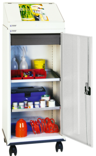 1 tiroir, 2 tablettes coulissantes, pupitre, plateau roulant