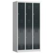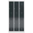 par compartiment 1 tringle et 2 doubles crochets par tablette. porte battante avec fentes d'aération. verrouillable avec serrure porte-cadenas pour cadenas. chaque compartiment à verrouillage individuel. Le socle encastré permet de répartir uniformément le poids de l’armoire sur le sol. Cela augmente la stabilité et l’armoire peut supporter des charges plus lourdes qu’une armoire à pieds. De plus, la saleté, la poussière et l’humidité ne peuvent pas s’infiltrer sous l’armoire, ce qui réduit la surface de nettoyage. structure en acier, soudé. corps avec finition peinture époxy électrostatique en RAL7035 gris clair, face avant avec finition peinture époxy électrostatique en RAL7016 gris anthracite.