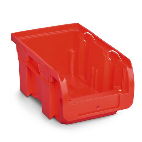 en polypropylène incassable en rouge. résistant à la température de -10 °C à +60 °C. avec poignée barre. ouverture de prise sur face avant. avec porte-étiquettes pour une inscription individuelle et claire. Plusieurs niveaux.
