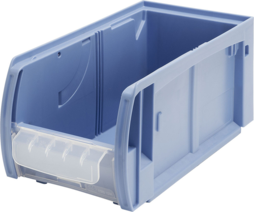 en polypropylène incassable en bleu pigeon. résistant à la température de -20 °C à +80 °C. ouverture de prise face avant avec vitre coulissante. avec porte-étiquettes pour une inscription individuelle et claire.
