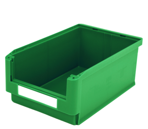 en polypropylène incassable en vert. résistant à la température de -20 °C à +90 °C. de qualité alimentaire, convient pour aliments non emballés selon RAL A 74, sans cadmium. fond gratté. transport facile grâce à poignée encastrée sur la face avant. avec surface d'étiquetage. convient pour convoyeurs à rouleaux et rayonnages dynamiques.