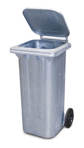 "description": "240l, HxlxP 1060x580x730mm, couvercle acier, corps galvanisé à chaud, 2roues, coupe-feu",
