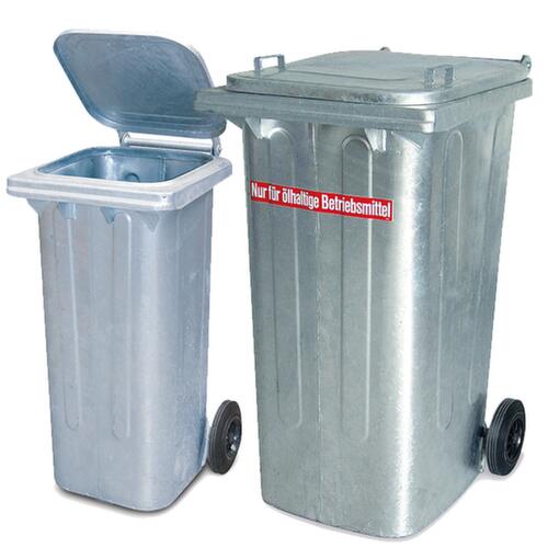 "metaDescription": "Bac à déchets en tôle d'acier pour étanche à l'huile et coupe-feu - galvanisé à chaud, 2 roues en caoutchouc plein",