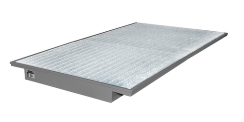 "metaDescription": "Bac à suspension avec caillebotis - vol. rétention 200l, HxlxP 140x2150x915mm, a. caillebotis, acier, RAL7005",