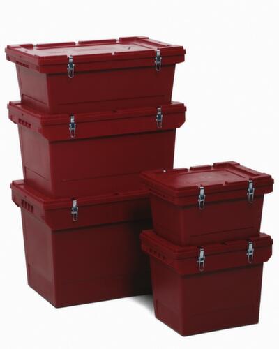 "metaDescription": "Bac certifié UN avec couvercle coiffant, capacité 27 l - p. bombes aérosol, PP, rouge pourpre, 27l, HxLxl 338x410x310mm, de Fermeture par clips métalliques",