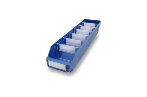 en polypropylène incassable, en bleu. guidages à encoches transversales et fixations au fond permettent de loger des séparateurs transversaux pour un compartimentage des bacs individuel. à bec. avec surface d'étiquetage. résistant à la température de -20 °C à +80 °C. matériau convient pour aliments.