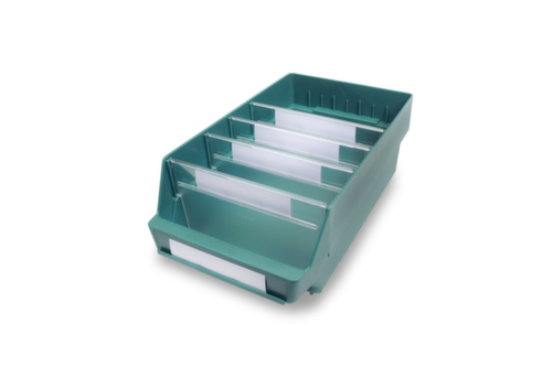 en polypropylène incassable, en vert. guidages à encoches transversales et fixations au fond permettent de loger des séparateurs transversaux pour un compartimentage des bacs individuel. à bec. avec surface d'étiquetage. résistant à la température de -20 °C à +80 °C. matériau convient pour aliments.