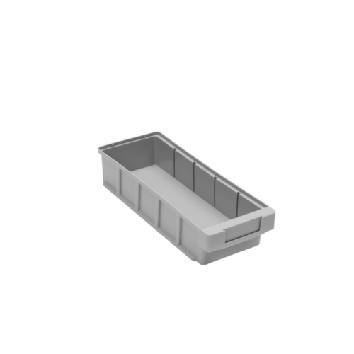 en polypropylène incassable, en gris. tablettes plein avec renfort grâce à rainures de renfort. transport facile grâce à poignée encastrée sur la face avant.