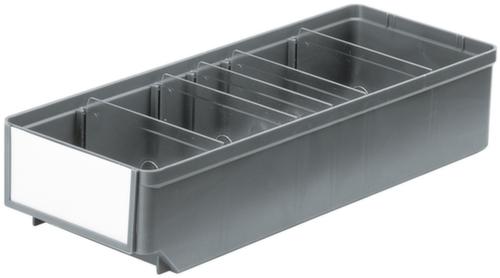 "longDescription": "<h2>Boîte à étagères</h2><strong>vue d'ensemble optimale grâce à une zone d'étiquetage extra large</strong><br><ul><li>Robuste - fabriqué en polystyrène résistant aux chocs.</li><li>Prêt pour une utilisation immédiate - la livraison comprend les étiquettes</li></ul><br><h3>Commandez directement :</h3><ul><li>Encore plus d'aperçu - diviseur transversal pour la subdivision en segments individuels</li><li>Accès sûr d'une seule main - verrouillage de l'inclinaison de l'étagère par une tirette</li></ul><br>Cette boîte d'étagère est la solution optimale pour le rangement des petites pièces sur l'étagère. La boîte de rangement est fabriquée en polystyrène robuste, a un faible poids propre et est néanmoins stable. La construction bénéficie d'une garantie de 5 ans. <br><br>Les surfaces lisses permettent un nettoyage rapide et facile. La boîte assure une manipulation facile dans l'atelier et l'entrepôt. Les boîtes peuvent également être empilées les unes sur les autres pour gagner de l'espace, ce qui permet d'accueillir facilement plusieurs boîtes de rangement à façade ouverte lorsque l'espace est limité. <br><br>Pour l'étiquetage de la boîte de petites pièces, la face avant peut être pourvue d'étiquettes extra larges, qui sont incluses dans la livraison. Grâce à l'étiquetage des étiquettes, l'utilisation de plusieurs bacs d'étagère peut contribuer à l'ordre dans l'étagère et créer une vue d'ensemble parfaite.<br><strong>Bon à savoir !</strong><br>Nous proposons, pour toutes les tailles de bac, des séparateurs transparents pour la répartition du contenu, et des blocages d'extension pour empêcher le bac de tomber du rayonnage. Pensez à les ajouter à votre commande !<br>",