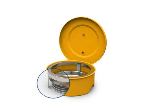 "metaDescription": "Bac de dégraissage FALCON - acier laqué, 2l, HxØ 102x264mm, coupe-flammes, a. tamis à immersion, jaune",