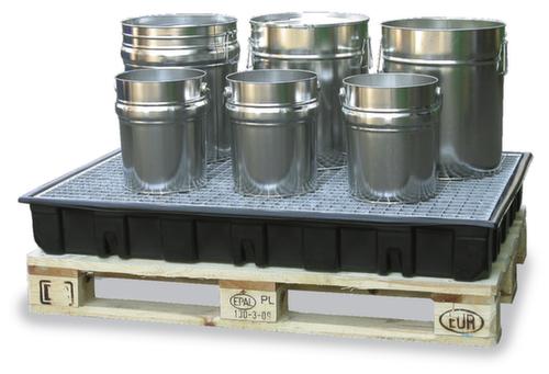 "metaDescription": "Bac de rétention palettisable - p. bidons, vol. rétention 140l, HxlxP 160x830x1230mm, a. caillebotis galvanisé",