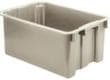 en polypropylène incassable en gris. parois plein, tablette plein. manutention facile avec poignées. empilable pour gain de place. convient pour aliments. Adapté aux convoyeurs à rouleaux.