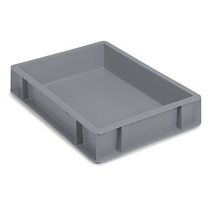 "metaDescription": "Bac gerbable norme Europe avec trou de préhension fermé, gris, capacité 6 l - HxLxl 70x400x300mm, 6l, PP, gris, Parois plein, fond plein",