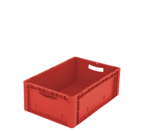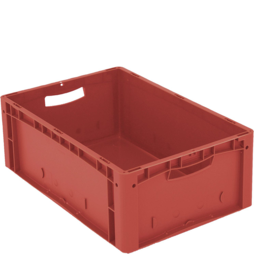 dimensions adaptées aux palettes européennes. en polypropylène incassable en rouge. Parois plein, fond plein. transport facile grâce à poignées ouvertes. Plusieurs niveaux gerbable. convient pour aliments. Résistant à la température -20 °C à +80 °C. Convient pour différents tissus, nous consulter.