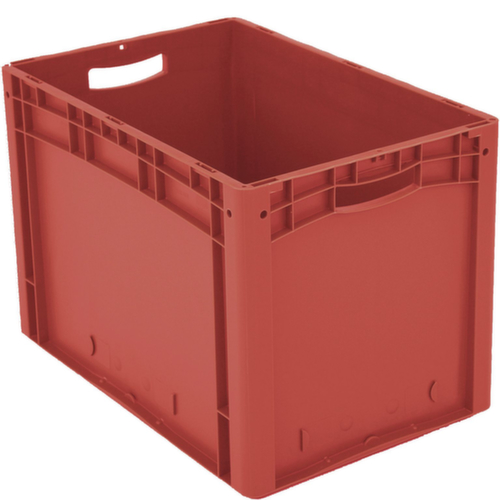 dimensions adaptées aux palettes européennes. en polypropylène incassable en rouge. Parois plein, fond plein. transport facile grâce à poignées ouvertes. Plusieurs niveaux gerbable. convient pour aliments. Résistant à la température -20°C à +60°C. Convient pour différents tissus, nous consulter.