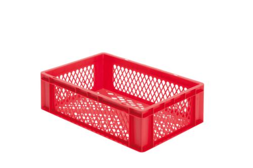 dimensions adaptées aux palettes européennes. en polypropylène incassable en rouge. Parois ajourés, fond ajourés. Plusieurs niveaux gerbable. convient pour aliments. Adapté aux convoyeurs à rouleaux. Résistant à la température -20 °C à +80 °C. Convient pour différents tissus, nous consulter.