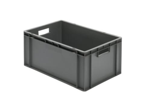 dimensions adaptées aux palettes européennes. en polypropylène incassable en gris. Parois plein, fond plein. transport facile grâce à poignées. Plusieurs niveaux gerbable. convient pour aliments. Adapté aux convoyeurs à rouleaux. Résistant à la température -20 °C à +80 °C. Convient pour différents tissus, nous consulter.
