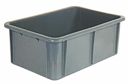 dimensions adaptées aux palettes européennes. en polyéthylène résistant aux chocs en gris. Parois plein, fond plein. transport facile grâce à poignées. Plusieurs niveaux gerbable. convient pour aliments. Résistant à la température -30 °C à +60 °C.