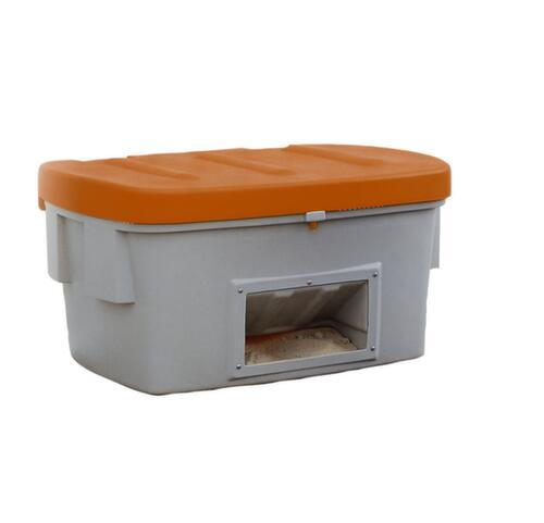en polyéthylène résistant aux chocs. équipé de couvercle rabattable qui se démonte rapidement et facilement - sans le moindre outil. Verrouillable : grâce au dispositif de suspension, il est possible d’installer facultativement et aisément un cadenas sur le couvercle et sur le corps. Une protection contre un accès non autorisé est ainsi possible à tout moment. récipient gris, couvercle orange. parois plein avec ouverture pour retrait pratique. Il est ainsi possible de prélever le matériel en toute aisance sans avoir à ouvrir le couvercle. fond plein. Gerbages avec couvercle ouvert.
