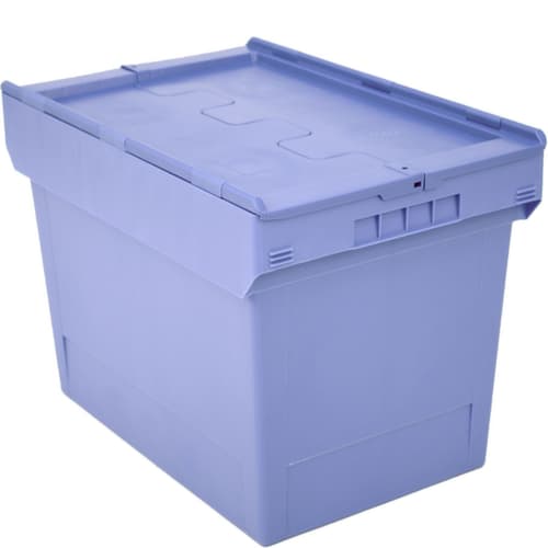 Norme européenne. en polypropylène incassable en bleu pigeon. La marchandise se stocke à l’abri de la poussière grâce aux parois fermées et le récipient se nettoie facilement. fond plein. La marchandise stockée est protégée contre la poussière et la saleté grâce au couvercle à charnière en 2 parties. Gerbages avec couvercle ouvert. Adapté aux convoyeurs à rouleaux. résistant à la température de -20 °C à +80 °C.