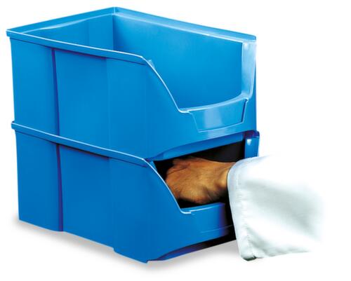 "title": "Bac à bec empilable Futura avec ouverture de prise profonde, bleu, profondeur 510 mm",