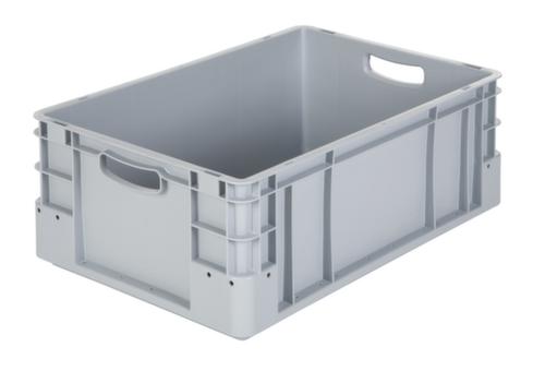 dimensions adaptées aux palettes européennes. en polypropylène incassable en gris. Parois plein, fond plein. Fond avec renfort grâce à des rainures de renfort. transport facile grâce à poignées. avec porte-étiquettes pour une inscription individuelle et claire. facilement empilable avec rebord gerbable gerbable Plusieurs niveaux en toute sécurité. convient pour aliments. Adapté aux convoyeurs à rouleaux. Résistant à la température -40 °C à +90 °C. Convient pour différents tissus, nous consulter.