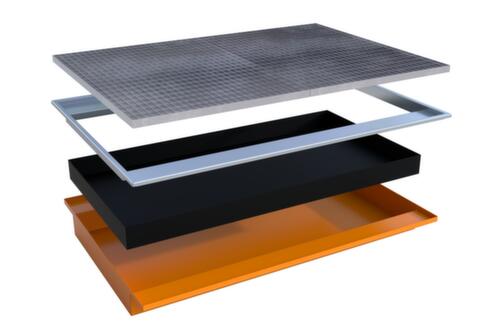 "description": "vol. rétention 200l, HxlxP 135x2665x1265/915mm, a. bac int. PE, caillebotis, tôle d'acier galvanisé à chaud",