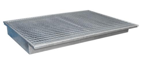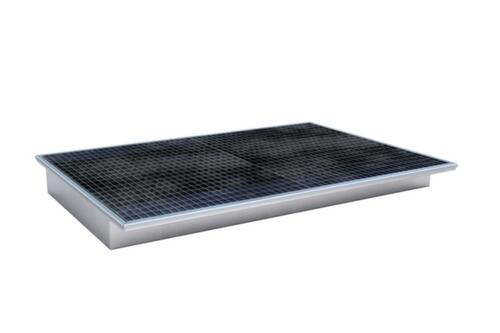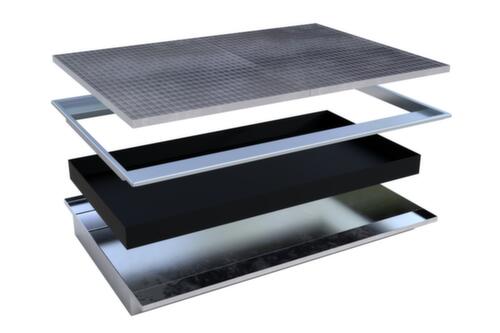 Rétrofitez les rayonnages à palettes ou d'autres rayonnages modulaires avec le bac de rétention à suspension en vue du stockage de produits dangereux, rapidement et conformément à la loi. Contrairement à d'autres bacs de rétention, le bac à suspension n'est pas posé sous le rayonnage, mais directement sur les traverses longitudinales comme niveau à part entière. La saillie sur les côtés longs forme une surface d'appui fiable. Le bac de rétention s'engage ainsi entre les traverses longitudinales et ne glisse pas.