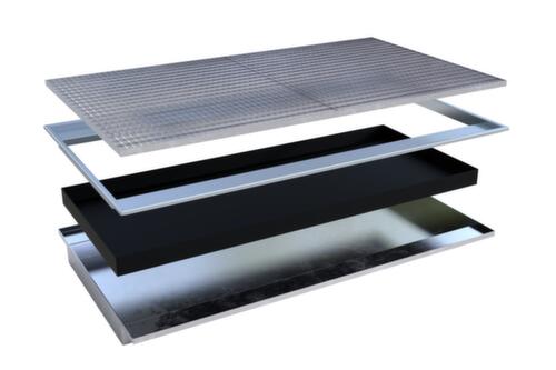 Rétrofitez les rayonnages à palettes ou d'autres rayonnages modulaires avec le bac de rétention à suspension en vue du stockage de produits dangereux, rapidement et conformément à la loi. Contrairement à d'autres bacs de rétention, le bac à suspension n'est pas posé sous le rayonnage, mais directement sur les traverses longitudinales comme niveau à part entière. La saillie sur les côtés longs forme une surface d'appui fiable. Le bac de rétention s'engage ainsi entre les traverses longitudinales et ne glisse pas.