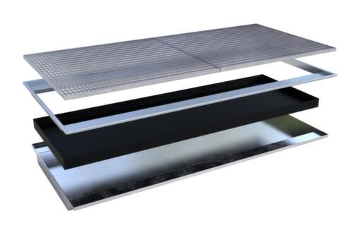 Rétrofitez les rayonnages à palettes ou d'autres rayonnages modulaires avec le bac de rétention à suspension en vue du stockage de produits dangereux, rapidement et conformément à la loi. Contrairement à d'autres bacs de rétention, le bac à suspension n'est pas posé sous le rayonnage, mais directement sur les traverses longitudinales comme niveau à part entière. La saillie sur les côtés longs forme une surface d'appui fiable. Le bac de rétention s'engage ainsi entre les traverses longitudinales et ne glisse pas.