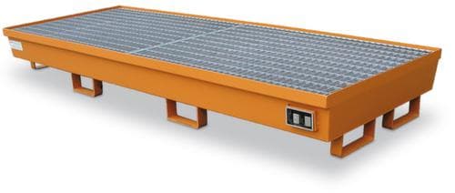 "description": "p. fût 4x200l, vol. rétention 233l, HxlxP 285x2400x800mm, a. caillebotis, acier, RAL2000",
