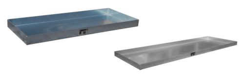 "longDescription": "<h2>Plateau d'égouttage</h2><strong>Stockage sûr des petits récipients</strong><br><ul><li>Convient aux substances polluantes pour l'eau et inflammables.</li><li>Pas de déversement en raison des bords latéraux élevés</li></ul><br><h3>Vous avez le choix :</h3><ul><li>Protégé contre la corrosion ou inoxydable - en acier galvanisé ou en acier inoxydable</li></ul><br><strong>Dispositions légales</strong><br>Construction des bacs de rétent. agréée par les autorités. Pour le stockage abrité de produits dangereux pour l’eau et inflammables.<br>",