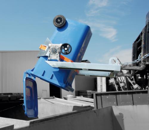 "longDescription": "<h2>Benne à fûts</h2><strong>Manipulation aisée de fûts jusqu'à 360 kg</strong><br><ul><li>En option, avec une manivelle ou une chaîne sans fin.</li><li>Pour chariot élévateur à fourche et/ou grue </li><li>Pour les fûts à bonde en acier, les fûts à couvercle en acier, les fûts à cerceau roulant, les fûts à anneau en L en plastique et les fûts à double anneau en L en plastique, d'une capacité de 60 à 220 litres, ainsi que pour les conteneurs à déchets de 120 et 240 litres.</li><li>Prisme avec courroie de tension et réducteur à double vis sans fin</li><li>Porte-fût avec verrouillage excentrique</li><li>Engrenage autobloquant</li></ul>",