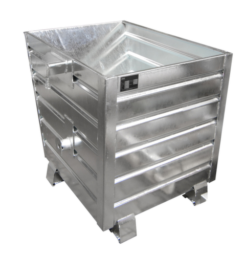 "longDescription": "<h2>Benne basculante empilable</h2><strong>Particulièrement robuste pour un usage intensif</strong><br><ul><li><strong>Gerbable 2 sur 1 à l'état rempli</strong> grâce aux pieds de gerbage renforcés</li><li><strong>Fonction de basculement confortable</strong> par déverrouillage du câble de traction à toute hauteur</li><li><strong>Robuste et anticorrosion</strong> - en tôle d'acier laquée</li><li><strong>Stabilité accrue</strong> grâce aux parois latérales profilées</li></ul>",