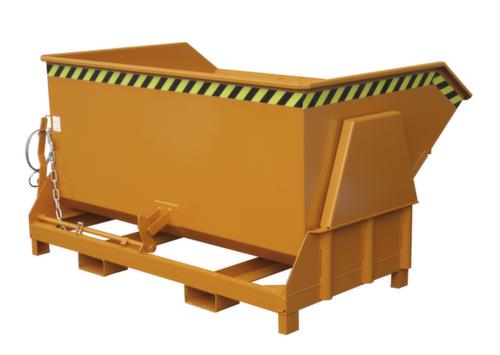 Le procédé de basculement est déclenché confortablement depuis le siège conducteur par déverrouillage du câble de traction. La disposition particulière du pivot garantit un vidage complet et rapide. Le mécanisme de déroulement ménageant le gerbeur garantit un basculement en douceur sans charge de chocs grâce au centre de gravité avantageux de la charge. Le mécanisme spécial est dissimulé pour une utilisation en toute sécurité. Après le vidage, la benne basculante retourne automatiquement à sa position initiale et la protection antibasculement se réenclenche automatiquement. Avec une chaîne de sécurité sur les fourreaux de fourche, la benne basculante peut également être fixée au gerbeur afin d’éviter qu’elle ne glisse . Stabilité élevée grâce aux bords renforcés sur tout le pourtour. Structure robuste en acier avec laquage coloris RAL2000 orangé jaune. Pour transporter et vider la benne basculante facilement, il suffit de la saisir avec le gerbeur via les fourreaux de fourche, puis de la placer à la position et à la hauteur souhaitées.