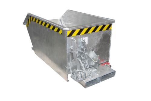 La benne basculante modèle bas est idéale comme récipient d’appoint sur une machine ou directement sous l’éjecteur de la machine.