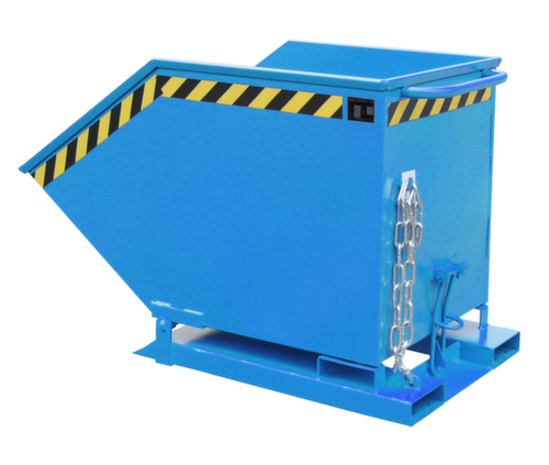 Les principales dimensions de la Bauer benne basculante en un coup d'œilLe procédé de basculement est facile à déclencher manuellement à l'aide d'une poignée située au dos. Pour protéger contre le basculement accidentel, la sécurité anti-basculement à ressort s'enclenche automatiquement lors du retour du conteneur. La benne basculante convient également pour la charge de liquides puisqu’elle est soudée de manière étanche à l’huile et à l’eau. Stabilité élevée grâce aux bords renforcés sur tout le pourtour. Structure robuste en acier avec laquage coloris RAL 5012 bleu clair. Pour transporter et vider la benne basculante facilement, il suffit de la saisir avec le gerbeur via les fourreaux de fourche, puis de la placer à la position et à la hauteur souhaitées.
