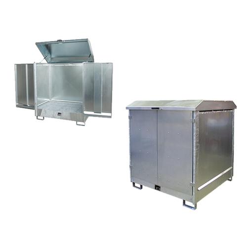 "longDescription": "<h2>Dépôt de matières dangereuses en acier</h2><ul><li>Entièrement réalisé en acier galvanisé</li><li>Plancher de 3 mm d'épaisseur</li><li>Caillebotis avec une capacité de charge de 1000 kg/m².</li><li>Le toit peut être replié grâce à des ressorts à gaz.</li><li>Peut être fermé en toute sécurité</li><li>L'entonnoir de remplissage ou les pompes de remplissage peuvent être placés à l'intérieur avec le fût.</li></ul>",