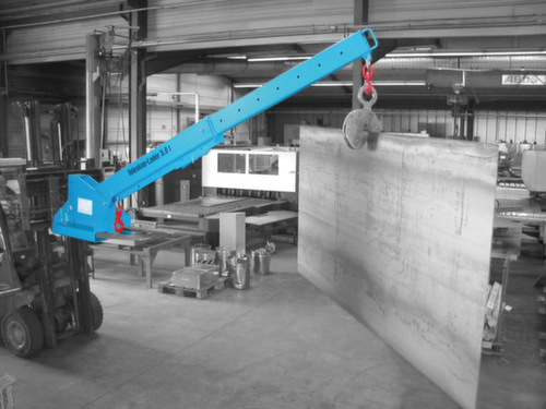 "longDescription": "<h2>Bras de grue télescopique</h2><strong>transforme le chariot élévateur en grue en peu de temps</strong><br><ul><li><strong>Maniement en toute sécurité</strong> - butée de sécurité délimitant la longueur maximale</li><li>Bras télescopique intérieur à 8 niveaux d'extension</li><li><strong>Soulèvement facile des charges</strong> grâce aux crochets à émerillon</li><li>Avec fourreaux de fourche pour les dents de fourche</li><li><strong>Protection contre le retrait et le glissement accidentels</strong> grâce à la chaîne de sécurité</li><li><strong>Robuste et durable</strong> - structure en acier stable</li></ul><br><h3>Le choix vous appartient :</h3><ul><li><strong>Design durable ou voyant</strong> - surface galvanisée à chaud ou avec laquage couleur</li></ul>",